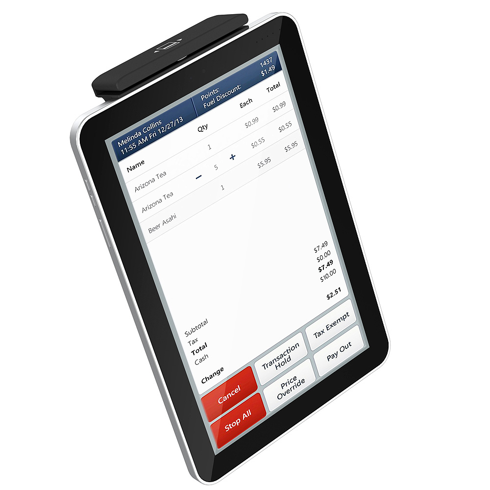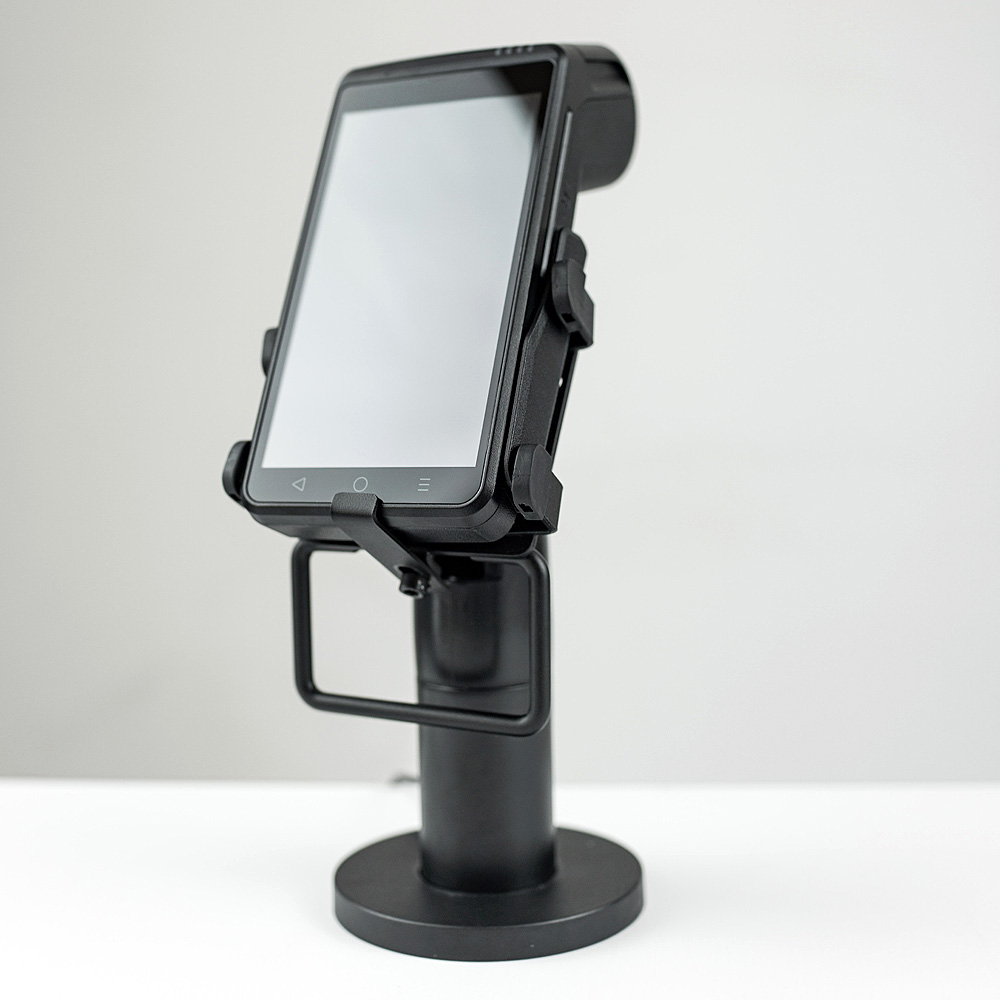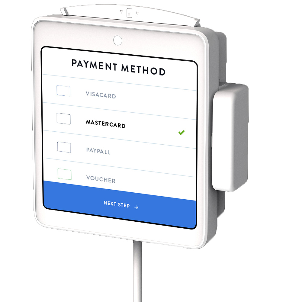 Ośmio-calowy terminal płatniczy Q8. Posiadający wszystkie cechy bezdrukarkowych terminali płatniczych oferowanych przez nas, ale ze znacznie większym ekranem. Może być używany jako urządzenie przenośne, albo na stałe zamontowany na ladzie sprzedawcy. |