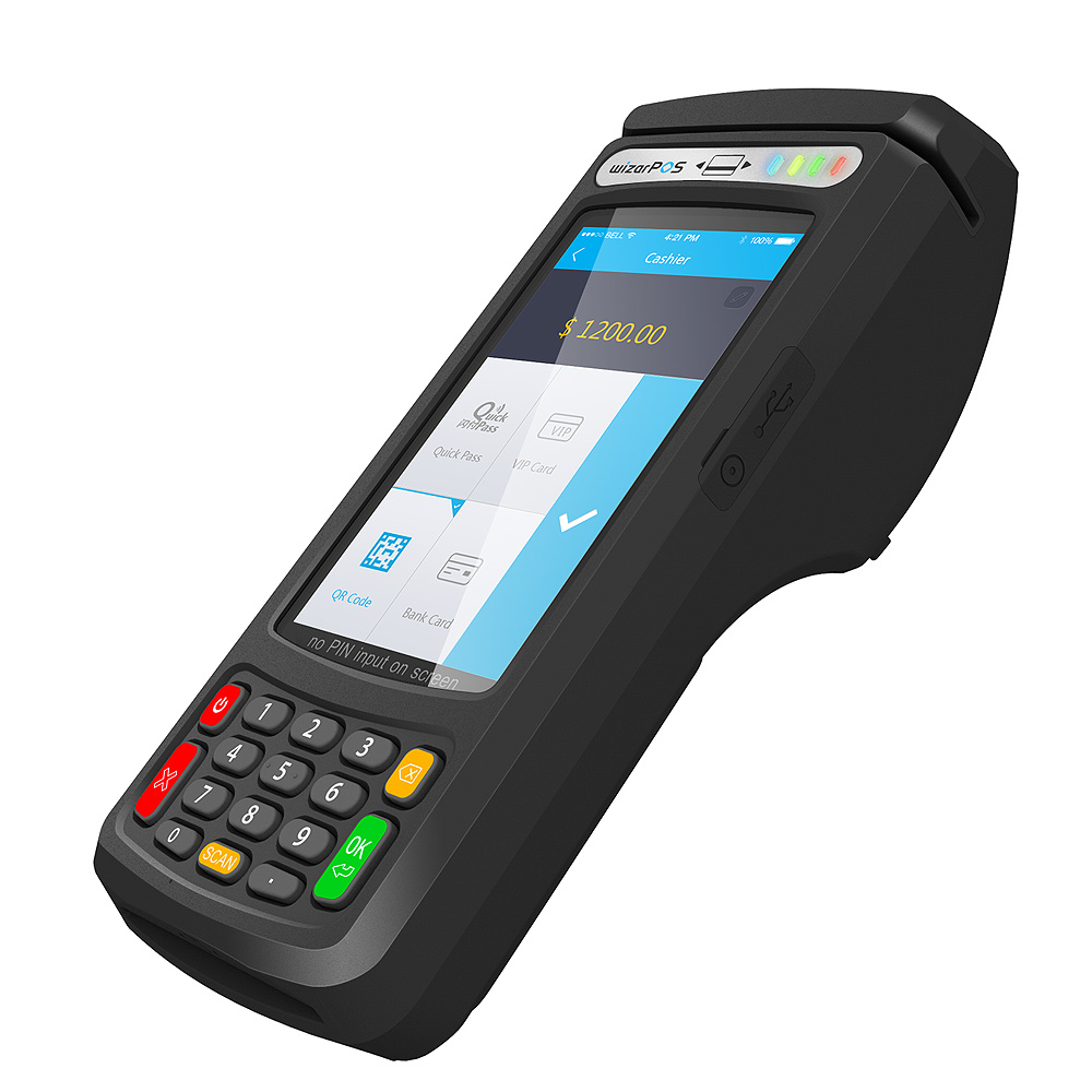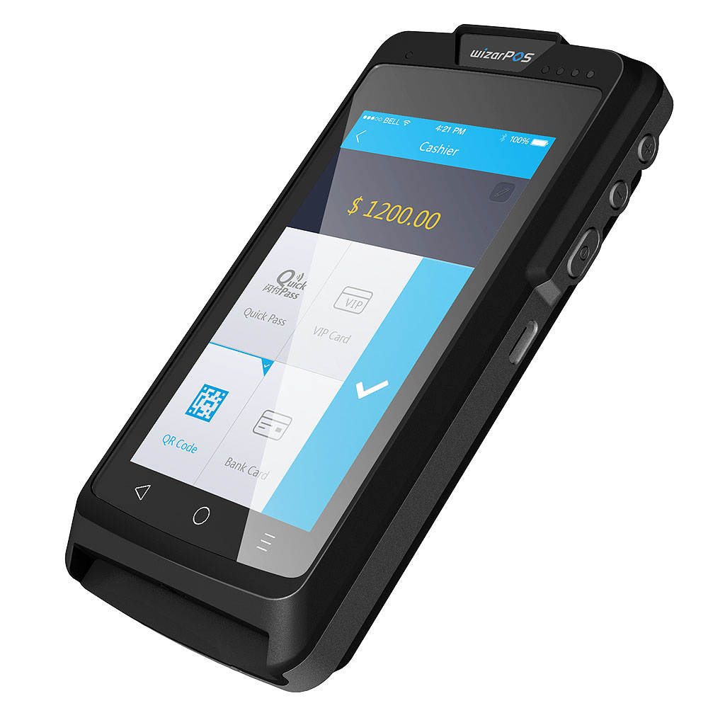 Q2 to najpopularniejszy uniwersalny terminal płatniczy dostarczany przez WizarPos (ponad 2mln sprzedanych egzemplarzy). Terminal łączy cechy urządzenia przenośnego, z możliwością stałego montażu na ladzie sprzedawcy. Spełnia wielorakie funkcje, od płatności i druku paragonów, poprzez zarządzanie inwentarzem oraz może być zdalnie sterowany za pomocą systemu TMS (Terminal Management System). Posiada możliwości odczytu danych biometrycznych (odciski palców oraz rozpoznawanie twarzy). Posiada bardzo pojemną baterię, umożliwiającą druk ponad 2 tysięcy paragonów, oraz 10 godzin pracy na jednym załadowaniu. |