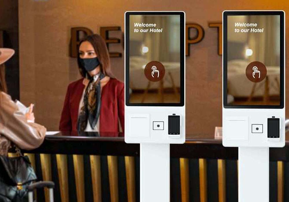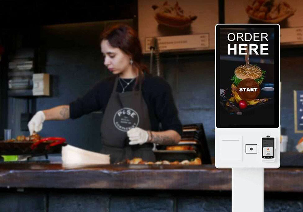 Płatniczy kiosk samoobsługowy D22. Wyposażony jest w 22 lub 33 calowy ekran dotykowy, wbudowaną drukarkę termiczną z automatyczną obcinarką papieru, umożliwiającą wydrukowanie do 450 paragonów na pojedynczą rolkę papieru 80mm, 5 Mega-pikslową kamerę cyfrową, dwa głośniki, wbudowany moduł płatniczy, oraz wszystkie funkcje pozostałych terminali tu opisanych. |