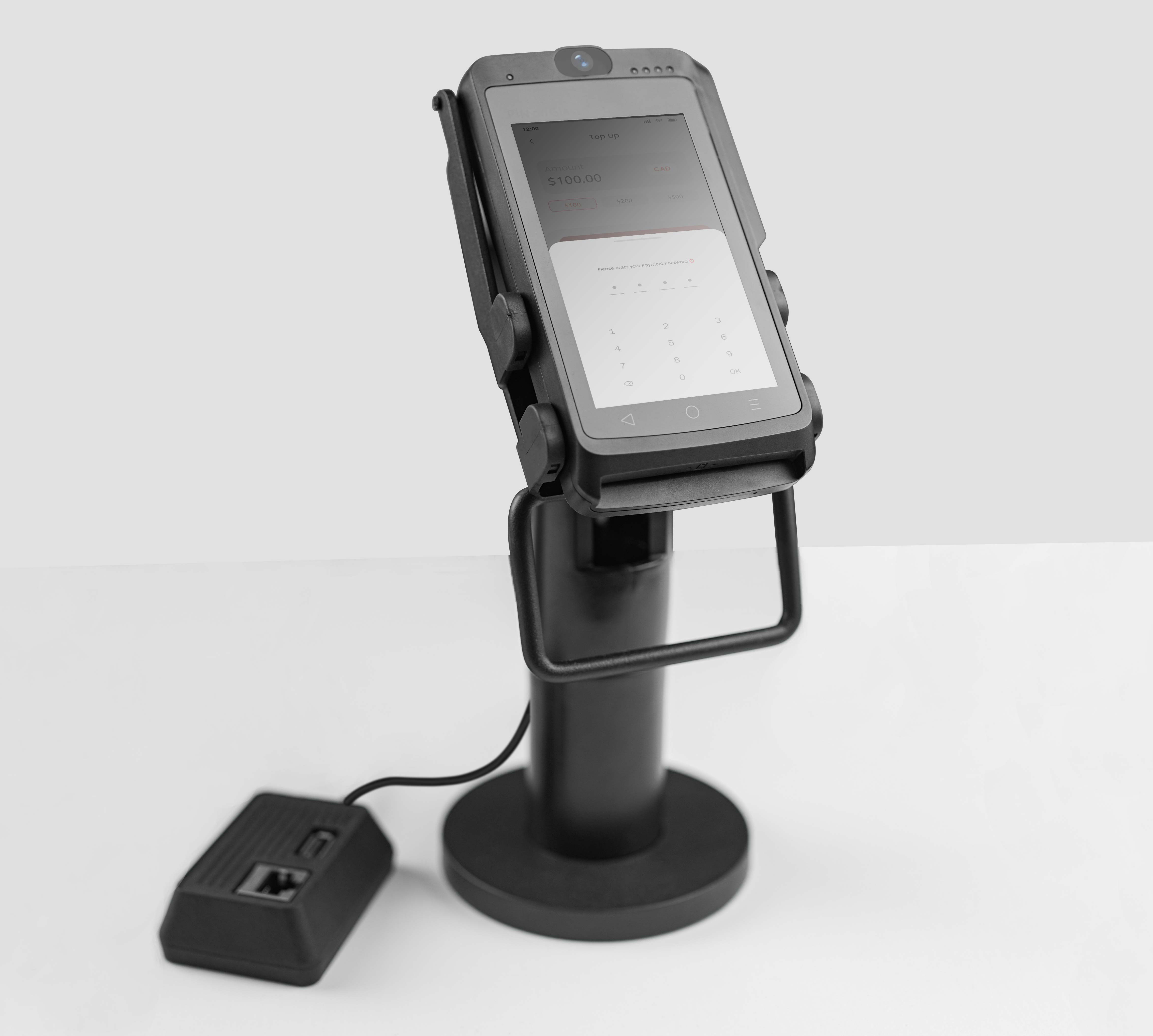 Terminal Q3, w połączeniu z (opcjonalnym) uchwytem może również być zastosowany jako poręczny terminal na ladę, jak również stanowić część większego systemu płatniczego poprzez połączenie np. z kioskiem D22 lub kasą płatniczą D3.
